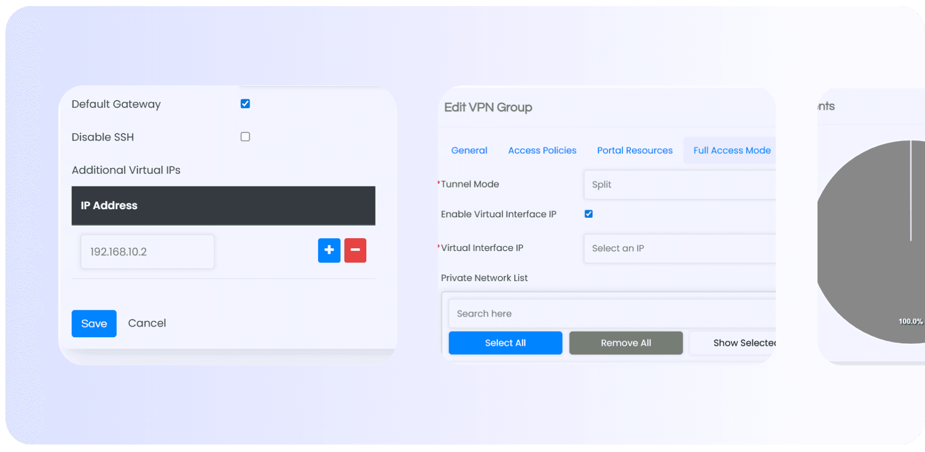 Group based MFA such as TOTP, Email Tokens, SMS OTP, MAC & UID Binding, Geo Fencing inbult controls